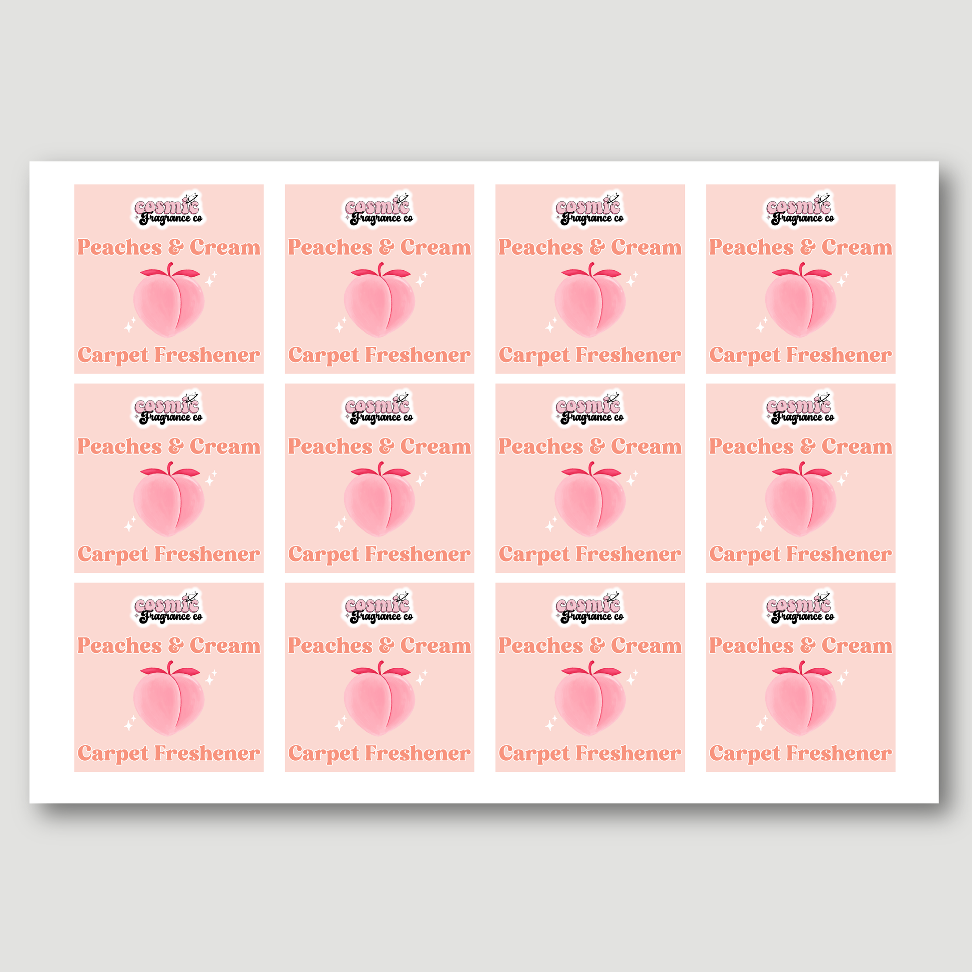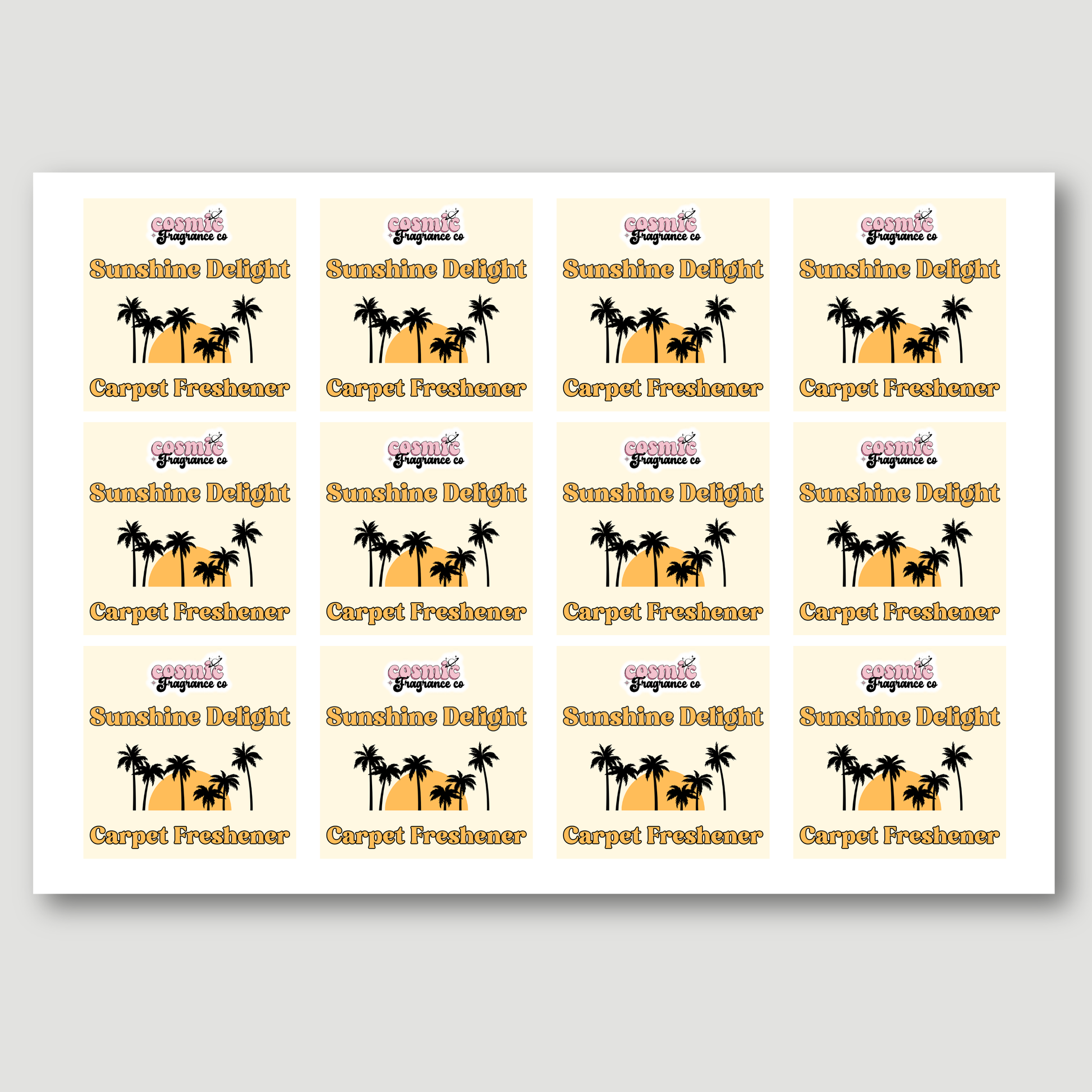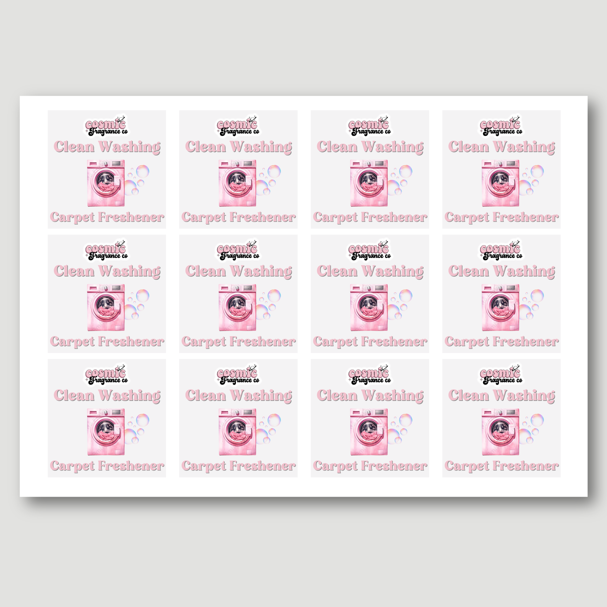 Add a cute and eye-catching finish to your products with these carpet freshener packaging labels. Fully customisable to suit your brand, each sticker is designed to make your packaging stand out. Simply add your chosen fragrance to the personalisation box and a unique design will be created for you. Each sticker measures 55mm x 55mm, but alternative sizes are available on request—just get in touch if you need something different.