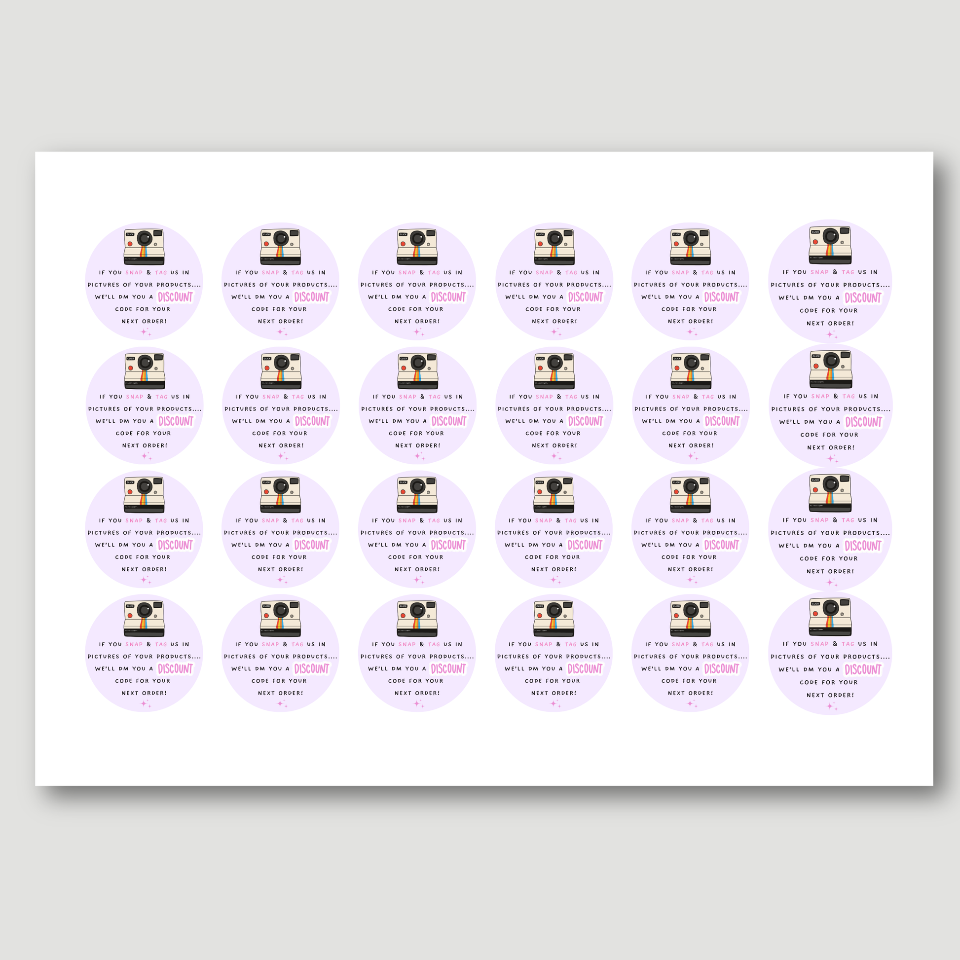 encourage your customers to share the love with these snap, tag & post discount stickers 📸 Designed to boost engagement and attract new customers, they’re the perfect addition to your packaging.